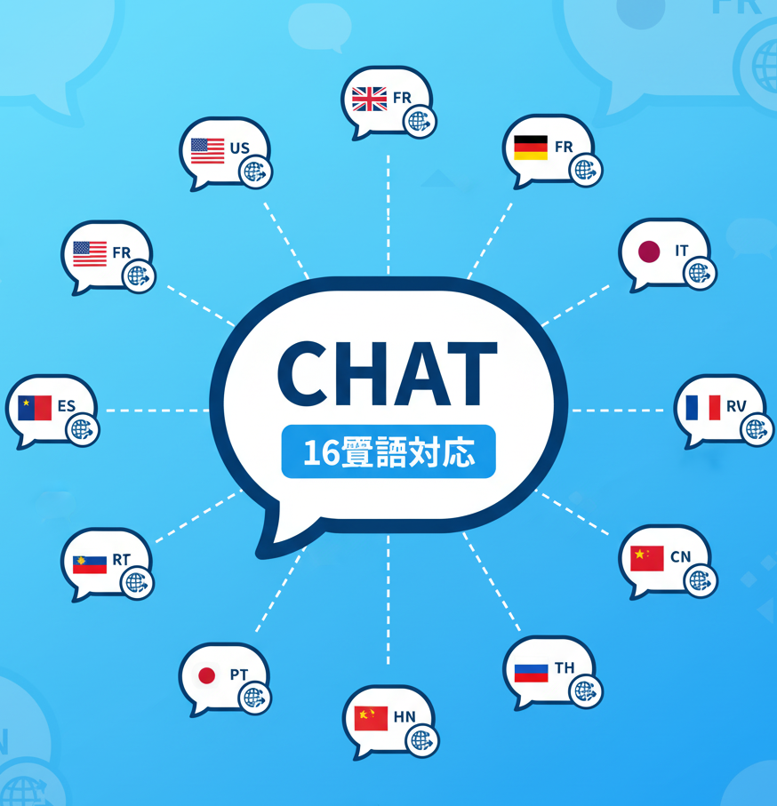 Diconチャットでは、お客様のスマートフォンやPCの設定言語に応じて最大16言語に自動翻訳されます。